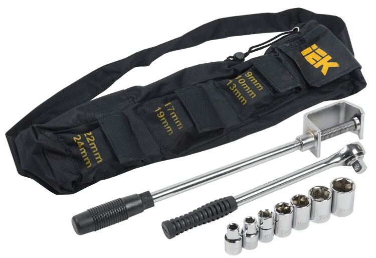 Набор для монтажа типа НМБ предназначен для монтирования изделий со срывными болтами (все типы болтовых наконечников и соединителей, также зажимов (например, ЗОИ)). Набор состоит из струбцины, реверсивного трещоточного ключа и набора сменных головок. Струбцина применяется для фиксации изделий со срывными болтами. Возможно использование струбцины для разворота и ориентирования жил кабеля. Реверсивный трещоточный ключ и набор сменных головок позволяют осуществить монтаж с минимальными усилиями.
