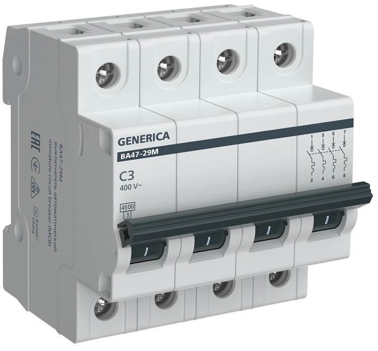 Автоматический выключатель ВА47-29М 4P 3А 4,5кА C GENERICA
