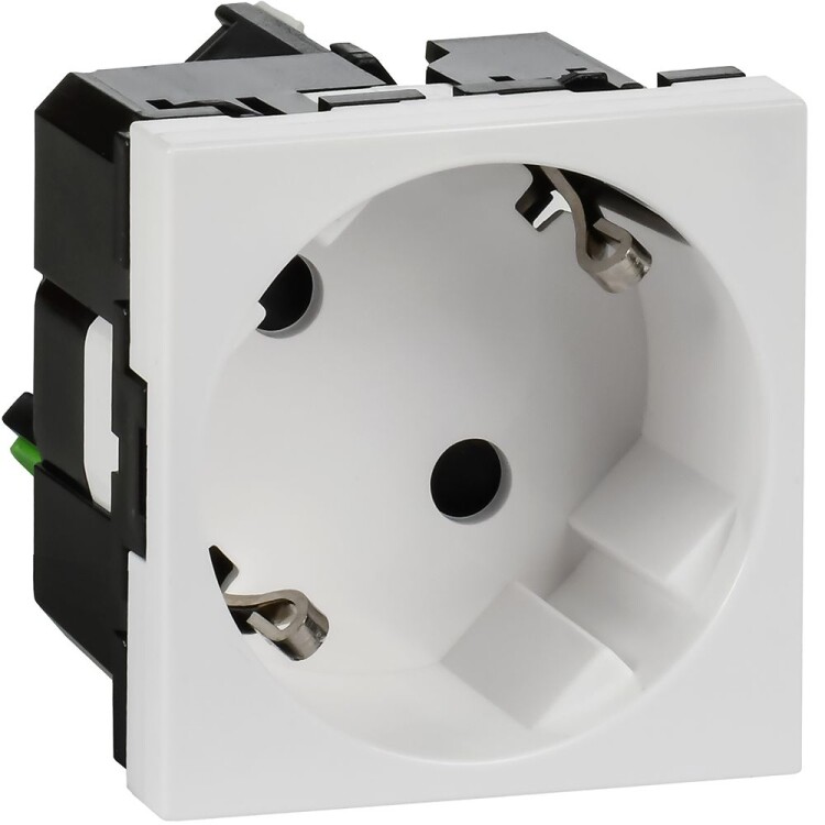 Розетка электрическая штепсельная с безвинтовыми зажимами предназначена для присоединения однофазных электрических потребителей к сети переменного тока напряжением 250В~ и частотой 50/60 Гц. Розетка поставляется с лицевой панель и устанавливаются в кабель-каналы DLP и Metra посредством соответствующих суппорт-рамок и в систему организации рабочих мест (лючки и колонны). Цвет: белый.