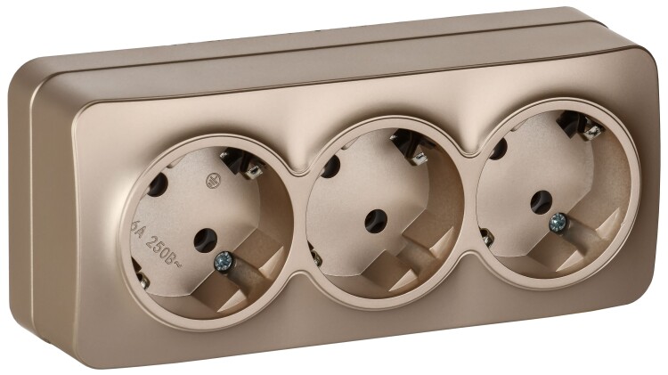 GLORY Розетка 3-местная для открытой установки с заземлением без защитных шторок 16А РС23-3-ХШм шамп