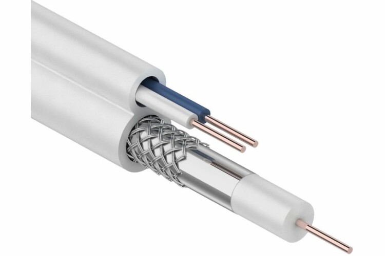 Кабель ККСВ-В+2х0.5 мм REXANT предназначен для передачи телевизионных сигналов в системах видеонаблюдения с одновременным подключением питания и/или передачи сигналов управления. Кабель ККСВ-В+2х0.5 мм состоит из радиочастотного (коаксиального) кабеля и двух жил питания. Коаксиальный кабель 3с-2v состоит из медного монолитного проводника, вспененного диэлектрика, внешнего проводника из алюминиевых жил в виде оплётки и оболочки из ПВХ. Жилы питания (медные) монолитные в изоляции и оболочке из ПВХ. Коаксиальный кабель и жилы питания соединены между собой. Кабель имеет форму восьмерки Использование кабеля ККСВ-В+2х0.5 мм REXANT регламентирует сертификат соответствия Таможенного Союза (EAC).