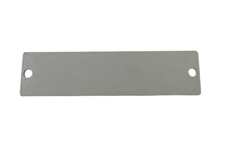 Она не имеет отверстий для оптических розеток и выполняет защитную функцию: предотвращает попадание пыли и посторонних предметов внутрь кросса. Планка изготовлена из металла, обеспечивающего стойкость к внешним воздействиям. Для крепления в кроссе предусмотрены специальные отверстия для пластиковых клипс.