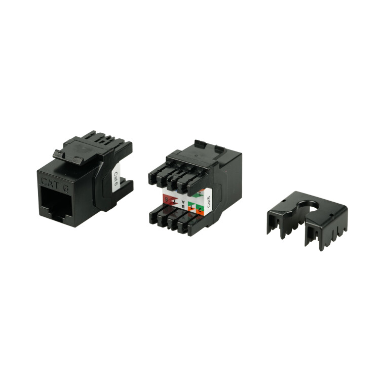Hyperline KJ8-8P8C-C6-180-BK Вставка Keystone Jack RJ-45(8P8C), категория 6, тип 180 градусов, черная Модули серии KJ8 предназначены для работы в высокоскоростных приложениях и обеспечивают отличные передающие характеристики, которые превосходят требования стандартов. Модули KJ8 используются для комплектации информационных розеток (TO), изготовления кабельных сборок, а также для установки в модульные (наборные) патч-панели. Для заказа доступны как неэкранированные, так и экранированные исполнения, а также варианты модулей для заделки инструментом или без инструмента (toolless). Универсальная цветовая маркировка T568A/B не позволит ошибиться при подключении проводников.