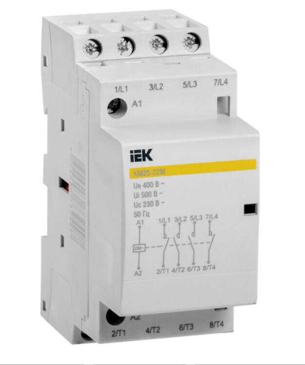 Контакторы модульные типа КМ торговой марки IEK предназначены для применения в сетях переменного тока напряжением до 400 В частоты 50 Гц и служат для коммутации слабоиндуктивных нагрузок с номинальным током до 63 А. Используются для автоматизации и управления различных технологических процессов, в том числе в системах освещения, кондиционирования, вентиляции и т.д.