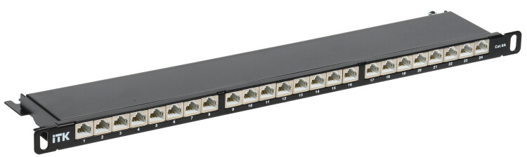 Патч-панель 0,5U, 19'', 24хRJ45, STP, кат.6а, Dual IDC, ITK PP24-D05UC6AS-D05H