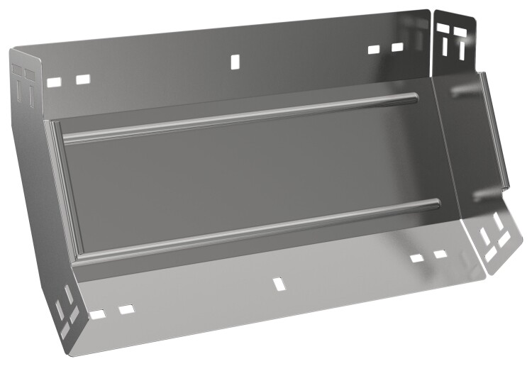 Поворот вертикальный внутренний на 45° предназначен для организации поворота кабельной трассы в вертикальной плоскости. Стыковка аксессуара с лотком осуществляется за счёт телескопического соединителя. Подходит для всех типов листовых лотков серии ESCA. Крышка на аксессуар заказывается отдельно. Аксессуар изготовлен из стали оцинкованной методом Сендзимира (защитный слой цинка не менее 5-10 мкм).