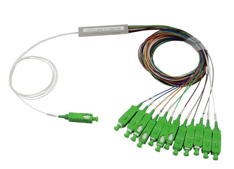 Оптические PLC сплиттеры предназначены для разделения одного входного сигнала на несколько выходных или объединения нескольких сигналов в один. PLC сплиттеры производят посредством нанесения диоксида кремния (волноводного слоя) на подложку из кремня, вследствие чего образуется кристалл, к которому затем приваривается ленточное волокно. Благодаря этой технологии делители объединяют в себе широкую полосу пропускания, которая равномерно охватывает весь рабочий диапазон длин волн, высокую надежность и стабильность работы, даже при неблагоприятных внешних условиях, небольшие размеры. У делителя P-303 один кабель находится на входе и восемь на выходе. Все кабели оконцованы коннекторами SC/APC. Микрокорпус представляет собой металлическую трубку прямоугольного сечения размером 60х7х4 мм. В делителе PLC используется кабель с диаметром 0,9 мм и длиной 0,5м. Оптическое волокно G657A, внешняя оболочка кабеля изготовлена из материала LSZH, который характеризуется низким уровнем выделения дыма при возгорании и отсутст