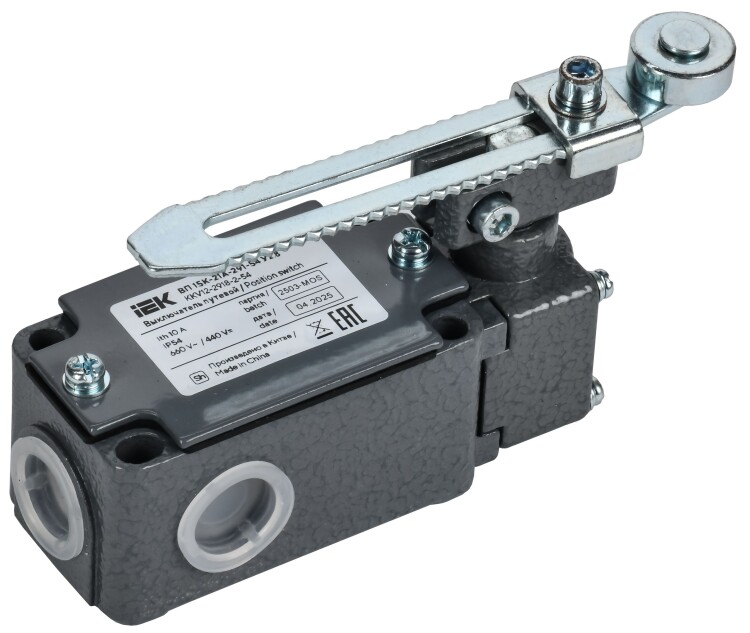 Выключатели путевые ВП15К товарного знака IEK (далее — выключатель) предназначены для коммутации электрических цепей управления переменного и постоянного тока под воздействием управляющих упоров в определенных точках пути контролируемого объекта. Они срабатывают при достижении механизмами заданных точек, размыкая или переключая электрические цепи управления. Эти выключатели играют ключевую роль в безопасности, предотвращая аварии и защищая оборудование от повреждений из-за перегрузок или нештатных ситуаций. Их применяют в лифтах, конвейерах, станках, автоматических воротах и других системах, где важен четкий контроль движения. Выключатель соответствует требованиям ТР ТС 004/2011, ГОСТ IEC 60947-5-1.
