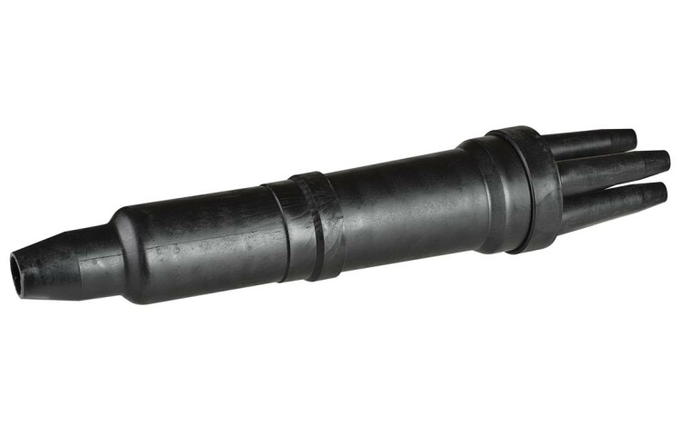 Предназначена для сращивания линейных кабелей ёмкостью 400 пар со станционными кабелями марки ТСВ ёмкостью 100 пар. Может монтироваться как на основных кабелях в полиэтиленовых оболочках, так и на основных кабелях в свинцовых оболочках. Устанавливается, как правило, в помещениях ввода кабелей (кабельных шахтах) городских АТС. Может использоваться в качестве линейной разветвительной муфты с установкой в колодцах кабельной канализации, в коллекторах, в технических помещениях и подвалах зданий. Имеет корпус, позволяющий выполнять сращивание жил многопарными соединителями. На оголовнике муфты размещены четыре патрубка. Два из них в состоянии поставки заглушены. Это позволяет использовать муфту в качестве станционной разветвительной муфты с вводом двух, трёх или четырёх стопарных кабелей ТСВ. Представляет собой только корпус, состоящий из трёх полиэтиленовых деталей. Для монтажа сростков и для герметизации муфты необходимо дополнительно заказывать расходные материалы.