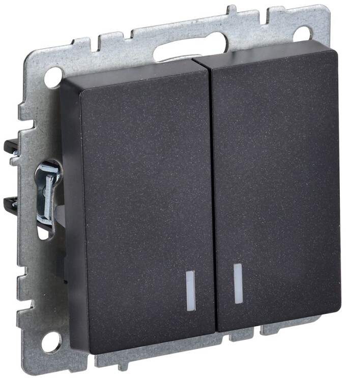 BRITE Выключатель 2-клавишный с индикацией 10А ВС10-2-1-БрЧ черный IEK