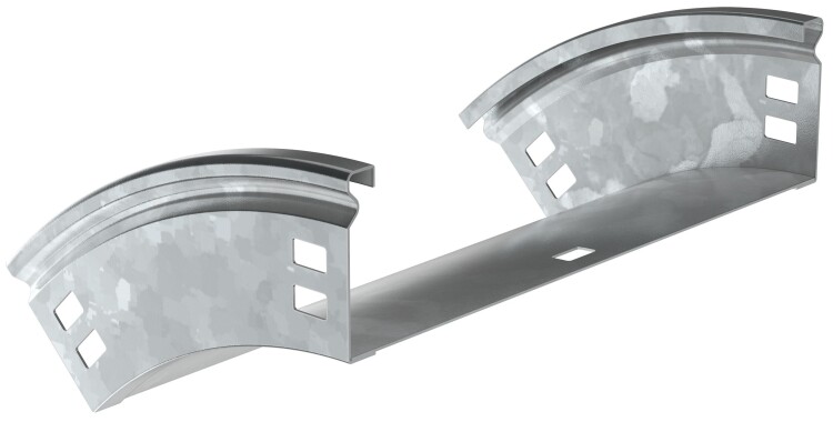 Поворот на 45° вертикальный внешний плавный предназначен для организации вертикального внешнего поворота кабельной трассы на 45°. Крышка аксессуара в комплект не входит. Аксессуар изготовлен из стали с цинковым покрытием, нанесенным погружением изделий в расплав цинка (защитный слой цинка не менее 55 мкм).