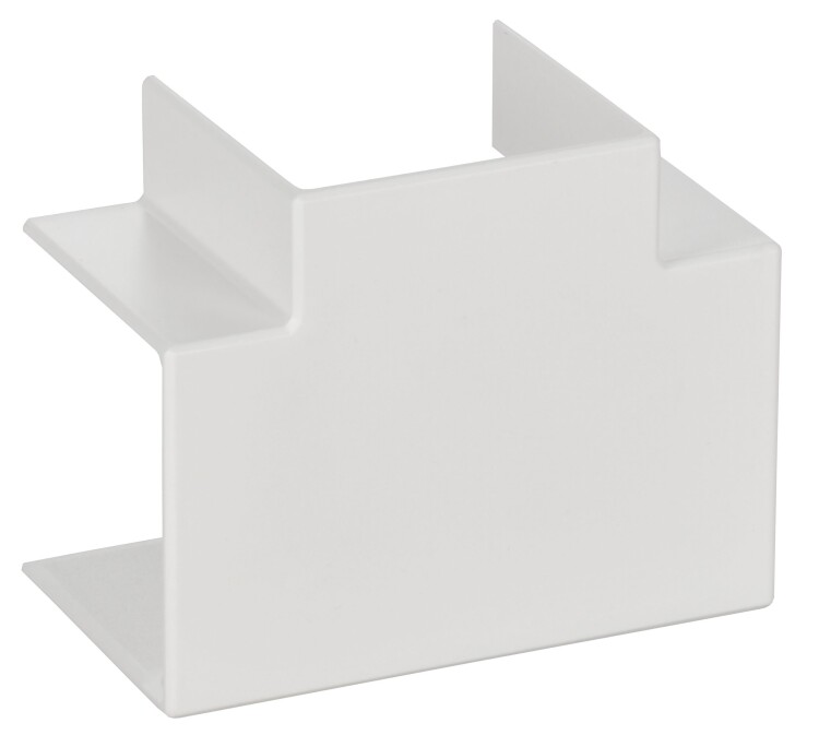 Угол Т-образный позволяет выполнить Т-образное соединение двух кабель-каналов, обеспечивает степень защиты всей системы IP40, улучшает внешний вид, закрывая место разреза. Т-образный угол закрепляется на корпусе кабель-канала простым защелкиванием. Цвет: белый.