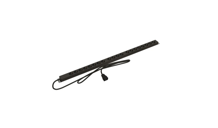 Hyperline SHE-20SH-2.5IEC Блок розеток, вертикальный, 20 розеток Schuko, кабель питания 2,5м (3х1мм2) с вилкой IEC320 C14 10А, 250В, корпус алюминий, черный