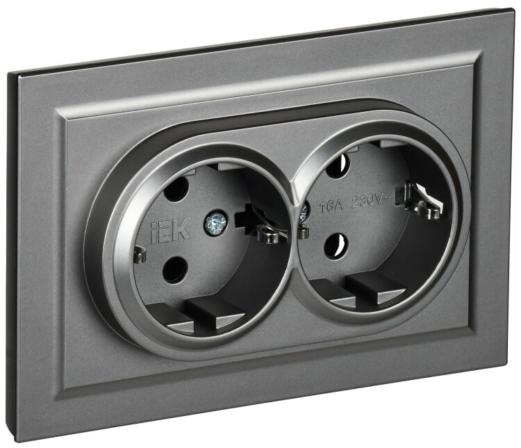 BRITE Розетка 2-местная с заземлением без защитных шторок 16А в сборе РС12-3-БрС сталь IEK