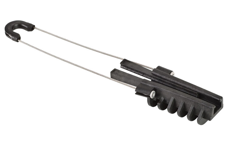 Предназначен для крепления оптического кабеля с внешним диэлектрическим силовым элементом (тросом). Позволяет просто и быстро закрепить кабель типа "8" за вынесенный диэлектрический трос. Нет необходимости оголять или же отделять несущий трос. Обеспечивает значительное сокращение продолжительности процесса подвес кабеля.