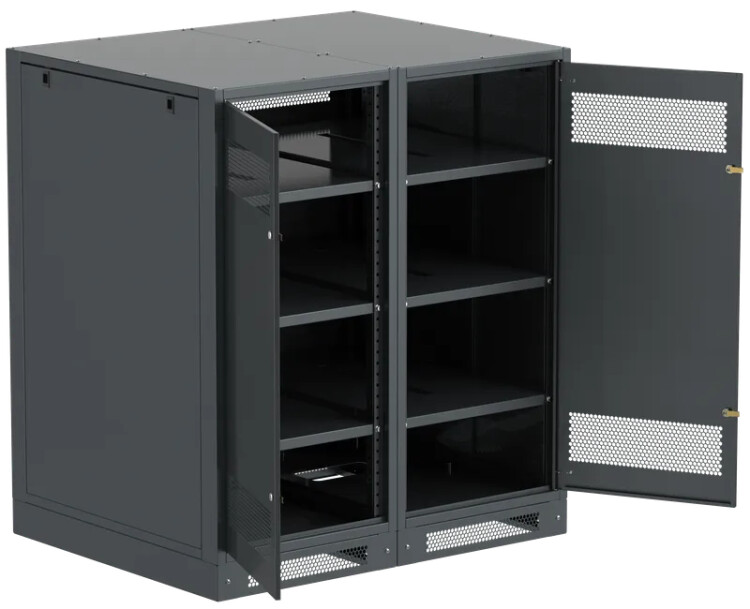 Шкаф аккумуляторный серии LINEA B предназначен для размещения и защиты от несанкционированного доступа аккумуляторных батарей (АБ). Шкафы LINEA B повышенной прочности со сварным каркасом и усиленными полками позволяют размещать АБ до 500 кг. на полке. Вместе со шкафом поставляются полки. Количество полок в комплекте зависит от высоты шкафа. Каркас позволяет размещать полки с шагом 30мм. В полках предусмотрены вырезы для удобства соединения АБ. В нижней части корпуса предусмотрена плата для установки предохранителя-выключателя-разъединителя ПВР. Шкаф аккумуляторный серии LINEA B двухсекционный поставляется на цоколе высотой 100мм. и состоит их двух секций. В месте эксплуатации требуется соединение секций метизами из комплекта поставки. Все металлические части шкафа LINEA B заземлены. В комплект включены РЫМ-болты для удобства перемещения шкафа. Вентиляционные отверстия в дверях и задней панели обеспечивают циркуляцию воздуха.