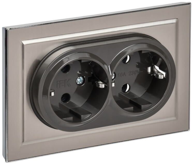 BRITE Розетка 2-местная с заземлением без защитных шторок 16А в сборе РС12-3-БрГН металл хром/никель