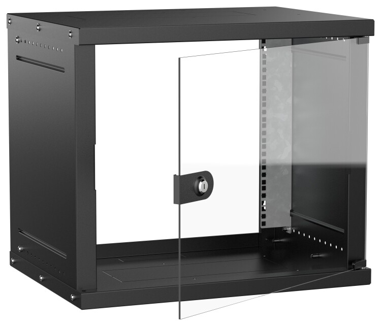 Шкаф настенный 19" 9U 600х450мм стеклянная дверь черный GENERICA