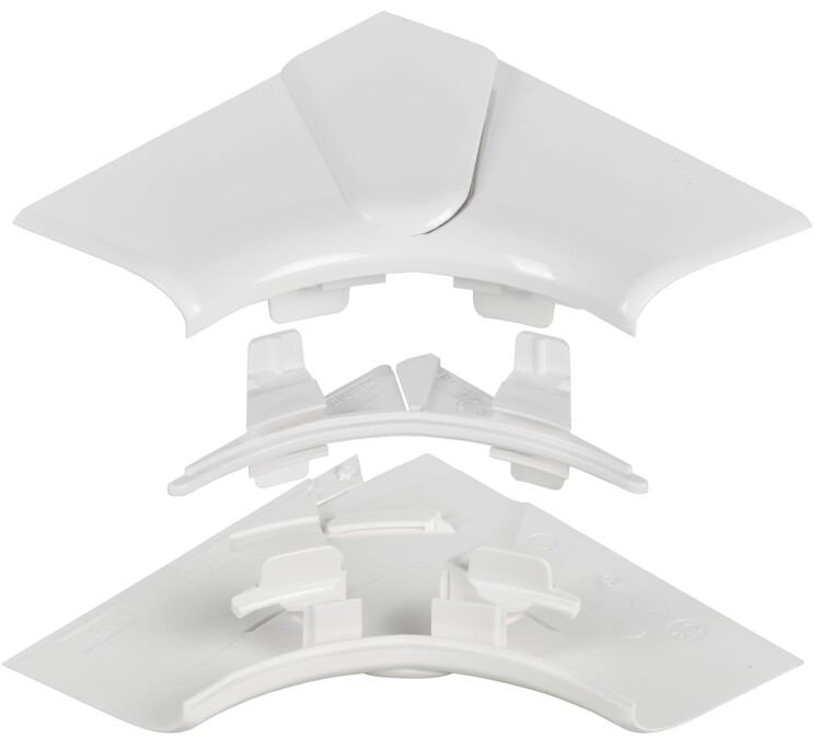 Угол внутренний изменяемый предназначен для соединения двух кабель-каналов одинакового сечения под внутренним углом 80–100°. Позволяет не разрезать кабель-канал под острым углом, обеспечивает степень защиты IP40, улучшает внешний вид и скрывает место разреза без излишнего утолщения кабельной трассы. Угол состоит из двух элементов — для верхней и нижней частей кабель-канала, между которыми защёлкивается крышка. Цвет: белый.