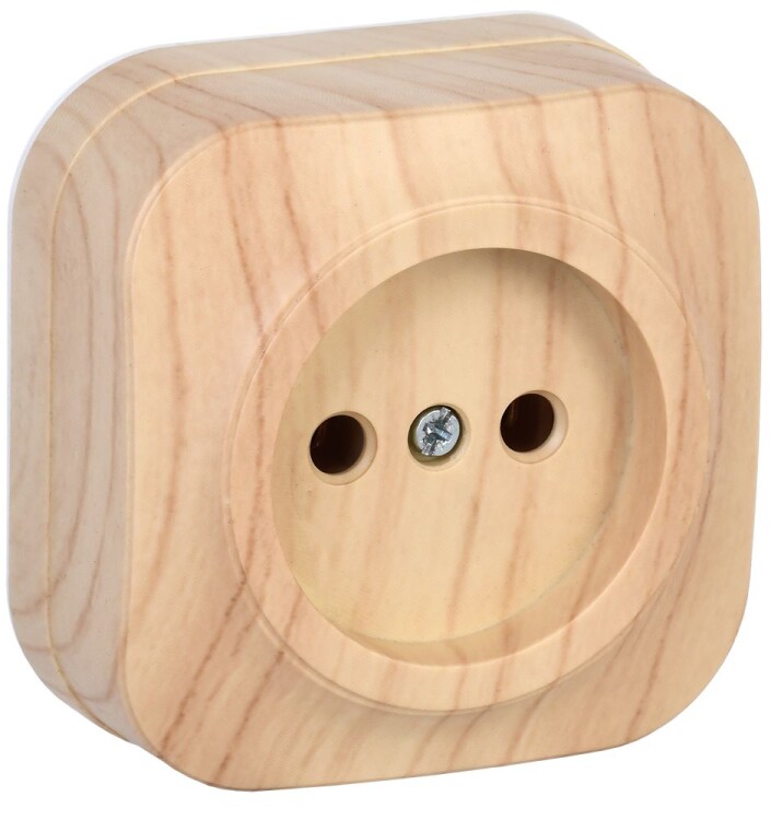 GLORY Розетка 1-местная для открытой установки без заземления без защитных шторок 10А РС20-2-ХС сосн