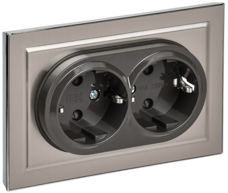 BRITE Розетка 2-местная с заземлением с защитными шторками 16А в сборе РСш12-3-БрГН металл хром/нике