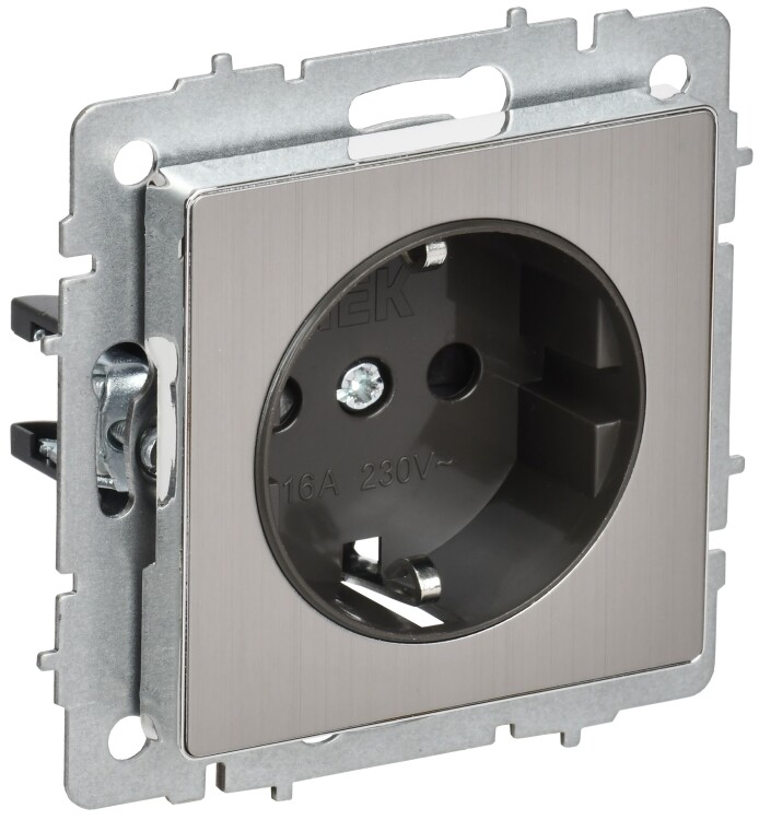 BRITE Розетка 1-местная с заземлением с защитными шторками 16А РС14-1-0-БрГН металл хром/никель IEK
