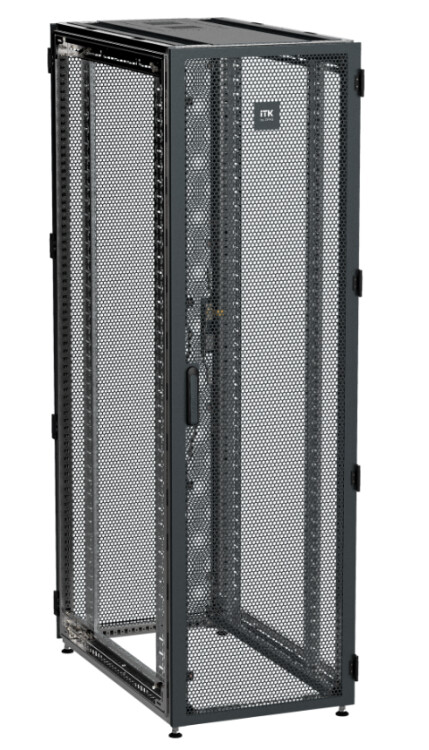 Серверный шкаф 19" ITK by ZPAS предназначен для размещения серверного и иного телекоммуникационного оборудования. Отвечает всем необходимым требованиям для решения задач в рамках проектирования и строительства ЦОД. Ассортимент доп. оборудования и аксессуаров обеспечивает возможность организации холодных, изолированных коридоров. Серверный шкаф укомплектован перфорированными дверьми с площадью перфорации 86%, передняя дверь - одностворчатая, задняя - двустворчатая. Замки оснащены поворотной ручкой, с механизмами 5-ти и 3-х точечной фиксации, что обеспечивает удобное и надежное запирание дверей. Каркас шкафа выполнен из высокотехнологичного замкнутого профиля, позволяющего при небольшой массе конструкции выдерживать статическую нагрузку до 1500 кг. Две пары оцинкованных 19" профилей, входящие в комплект шкафа 19", имеют юнитовую разметку в двух направлениях. Комплект заземления и ножки входят в стандартную комплектацию.Боковые панели в комплект поставки не входят и заказываются отдельно.