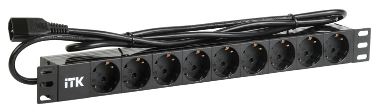 Горизонтальные 19” PDU от ITK прекрасно справляются с задачей по электроснабжению сетевого оборудования в шкафах и стойках, а также с требованием защиты от токов короткого замыкания и перенапряжения. Изготавливаются блоки розеток из высококачественных термостойких материалов и пластмасс, оснащаются в зависимости от модели выключателем со светоиндикацией, автоматом УЗО, кнопкой сброса при перенапряжении и соответствуют российским и международным стандартам качества. Горизонтальные PDU соответствуют стандарту 19” (482,6 мм) и устанавливаются с помощью кронштейнов на 19” профиль, при этом положение кронштейнов можно менять.