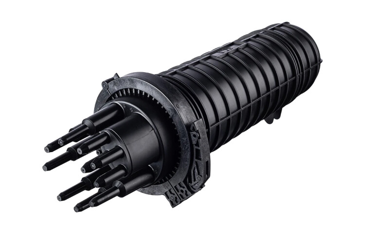 Предназначена для монтажа подвесного магистрального кабеля с абонентскими ответвлениями самонесущих дроп-кабелей малого диаметра. Особенностью муфты является наличие внутри корпуса кронштейна, на котором с одной стороны крепится четыре кассеты К24-4525, на противоположной стороне от кассет находится планка для размещения 36 адаптеров типа SC. Муфта выполнена из качественной пластмассы и имеет пыле-влагозащищенную тупиковую конструкцию (ввод ОК и вывод дроп-кабелей производится с одной стороны), с уплотнительной прокладкой на стыке кожуха с оголовником. В муфте предусмотрен овальный ввод для транзитной петли оптических модулей без разрезания. Выкладка петли модулей осуществляется на лотке со стороны кассет. Способ герметизации корпуса с оголовником механический. Осуществляется при помощи эластичной кольцевой прокладки и армированного пластикового хомута с самозатягивающимся замком. Замок хомута сконструирован таким образом, что при открывании защелка трансформируется в рычаг, обеспечивающий легкое снят