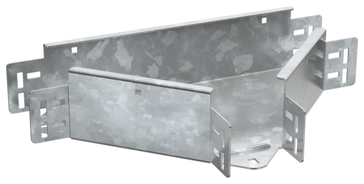 Разветвитель Т-образный горизонтальный предназначен для организации Т-образного ответвления кабельной трассы в горизонтальной плоскости. Стыковка аксессуара с лотком осуществляется за счёт телескопического соединителя. Подходит для всех типов листовых лотков серии ESCA. Крышка на аксессуар заказывается отдельно. Аксессуар изготовлен из стали оцинкованной методом горячего погружения (защитный слой цинка не менее 55 мкм).