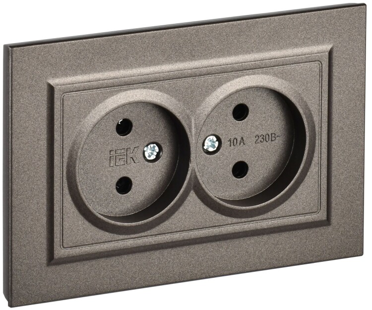BRITE Розетка 2-местная без заземления без защитных шторок 10А в сборе РС12-2-БрТБ темная бронза IEK