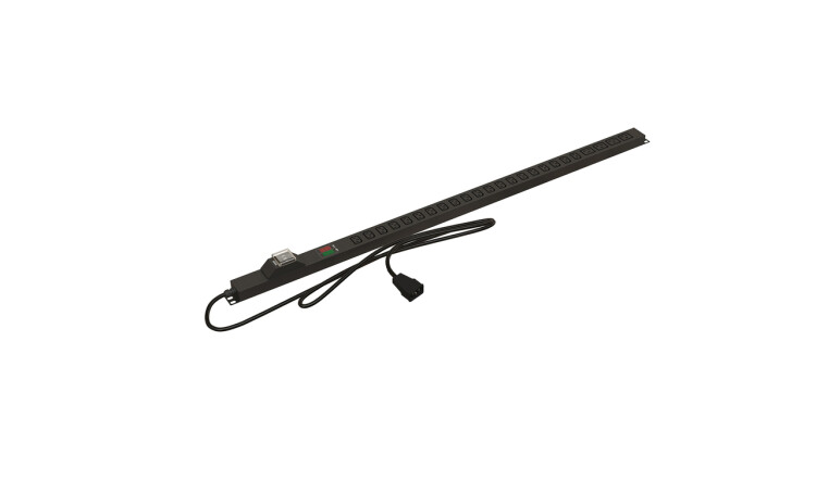 Hyperline SHE-20IEC-4BIEC-BAV-2.5AIEC Блок розеток, вертикальный, 20 розеток IEC320 C13, 4 розетки IEC320 C19, автоматический выключатель, амперметр/вольтметр, кабель питания 2.5м (3х1.5мм2) с вилкой IEC320 C20 16A, 250В, корпус алюминий, черный