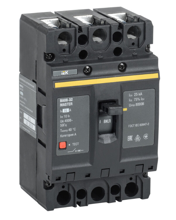 Автоматический выключатель в литом корпусе ВА88 MASTER предназначен для защиты электрических сетей от токов короткого замыкания, токов перегрузки, недопустимых снижений напряжения, а также для проведения тока в нормальном режиме. Автоматические выключатели производятся в 5 типоразмерах, оснащены термомагнитным расцепителем на токи от 16 до 800А и электронным расцепителем на токи от 125 до 800А. Рабочее напряжение 400/690 В. Конструкция автоматического выключателя предусматривает возможность самостоятельной установки дополнительных устройств на объекте заказчика.