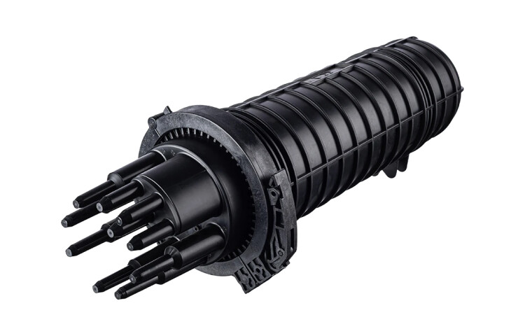 Предназначена для монтажа подвесного магистрального кабеля с абонентскими ответвлениями самонесущих дроп-кабелей малого диаметра. Особенностью муфты является наличие внутри корпуса кронштейна, на котором с одной стороны крепится четыре кассеты К24-4525, на противоположной стороне от кассет находится планка для размещения 36 адаптеров типа SC. Муфта выполнена из качественной пластмассы и имеет пыле-влагозащищенную тупиковую конструкцию (ввод ОК и вывод дроп-кабелей производится с одной стороны), с уплотнительной прокладкой на стыке кожуха с оголовником. В муфте предусмотрен овальный ввод для транзитной петли оптических модулей без разрезания. Выкладка петли модулей осуществляется на лотке со стороны кассет. Способ герметизации корпуса с оголовником механический. Осуществляется при помощи эластичной кольцевой прокладки и армированного пластикового хомута с самозатягивающимся замком. Замок хомута сконструирован таким образом, что при открывании защелка трансформируется в рычаг, обеспечивающий легкое снят