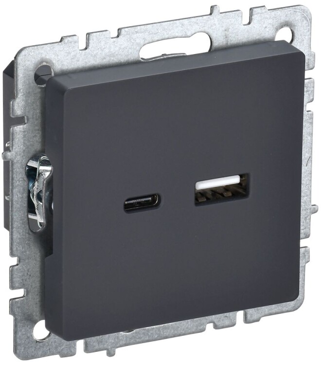 BRITE Розетка USB A+C 18Вт РЮ11-1-БрГ графит IEK