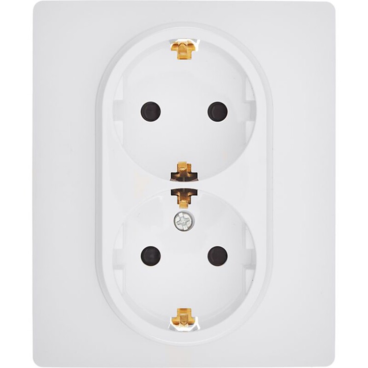 Розетка двойная с заземлением, с защитными шторками для скрытого монтажа Inspiria, цвет "Белый", максимальный ток 16А, напряжение ~250В, максимальная мощность 3680Вт, винтовые зажимы. Применяется для присоединения однофазных электрических потребителей к сети переменного тока в зданиях с проводкой с заземлением (с защитным проводником). Позволяет компактно разместить две розетки в одном установочном месте.