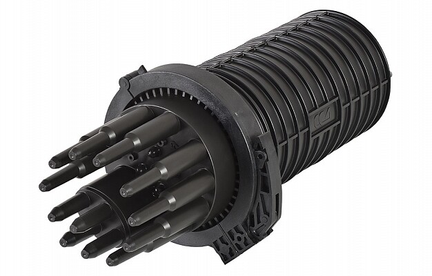 Предназначена для монтажа подвесных самонесущих ОК и оптических кабелей с вынесенным силовым элементом типа «8», а также городских кабелей любых конструкций, в том числе и с броней из стальной гофрированной ленты. В муфте предусмотрен овальный ввод для транзитной петли оптических модулей без разрезания. Выкладка петли модулей осуществляется на лотке с противоположной стороны от кассет. Способ герметизации корпуса с оголовником механический. Осуществляется при помощи эластичной кольцевой прокладки и армированного пластикового хомута с самозатягивающимся замком. Замок хомута сконструирован таким образом, что при открывании защелка трансформируется в рычаг, обеспечивающий легкое снятие хомута с муфты. Способ герметизации вводов кабелей, осуществляется с помощью термоусаживаемых трубок ТУТ. Круглые патрубки на оголовнике муфты изначально герметичны и имеют ступенчатую форму с разными диаметрами. Срезая патрубок в определенном месте можно подобрать отверстие максимально близкое к диаметру вводимого кабеля.