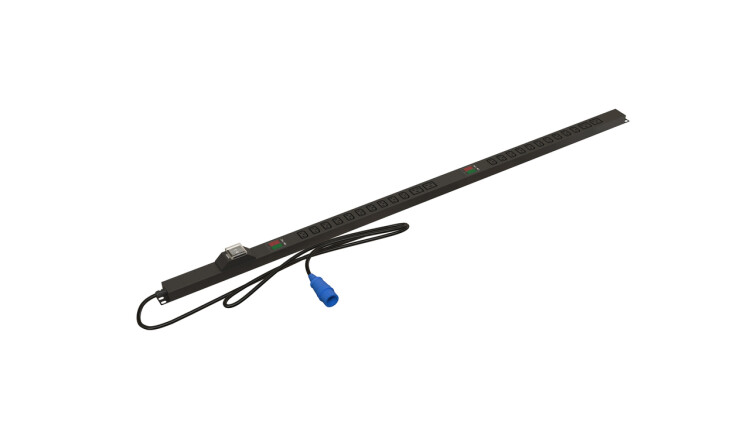 Hyperline SHE-20IEC-4BIEC-BAV-3PVB Блок розеток, вертикальный, 20 розеток IEC320 C13, 4 розетки IEC320 C19, автоматический выключатель, амперметр/вольтметр, кабель питания 3м (3х4.0мм2) с вилкой IEC 60309 32А (2х16A) (2P+E), 250В, корпус алюминий, черный