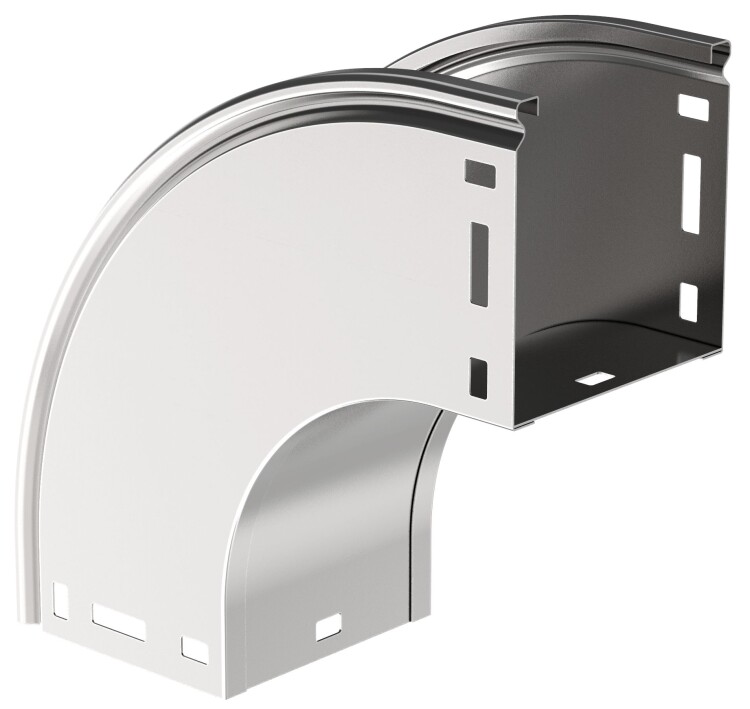 Поворот на 90° вертикальный внешний плавный предназначен для организации вертикального внешнего поворота кабельной трассы на 90°. Крышка аксессуара в комплект не входит. Аксессуар изготовлен из стали горячего цинкования методом Сендзимира (защитный слой цинка не менее 10 мкм).