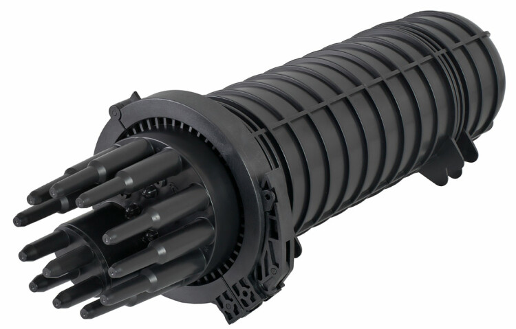 Предназначена для монтажа подвесных самонесущих ОК и оптических кабелей с вынесенным силовым элементом типа «8», а также городских кабелей любых конструкций, в том числе и с броней из стальной гофрированной ленты. В муфте предусмотрен овальный ввод для транзитной петли оптических модулей без разрезания. Выкладка петли модулей осуществляется на лотке с противоположной стороны от кассет. Способ герметизации корпуса с оголовником механический. Осуществляется при помощи эластичной кольцевой прокладки и армированного пластикового хомута с самозатягивающимся замком. Замок хомута сконструирован таким образом, что при открывании защелка трансформируется в рычаг, обеспечивающий легкое снятие хомута с муфты. Способ герметизации вводов кабелей, осуществляется с помощью термоусаживаемых трубок ТУТ. Круглые патрубки на оголовнике муфты изначально герметичны и имеют ступенчатую форму с разными диаметрами. Срезая патрубок в определенном месте можно подобрать отверстие максимально близкое к диаметру вводимого кабеля.
