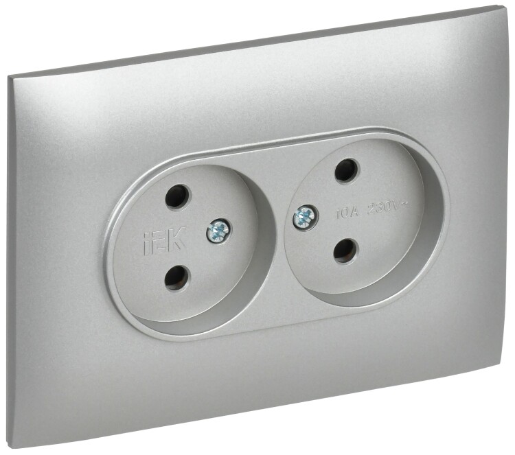 SKANDY Розетка 2-местная без заземления с защитными шторками 10А в сборе SK-R09S серебряный IEK