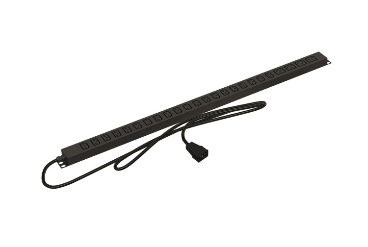 Hyperline SHE-20IEC-4BIEC-2.5AIEC Блок розеток, вертикальный, 20 розеток IEC320 C13, 4 розетки IEC320 C19, кабель питания 2.5м (3х1.5мм2) с вилкой IEC320 C20 16A, 250В, корпус алюминий, черный