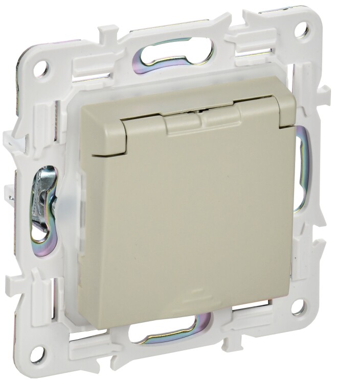 SKANDY Розетка 1-местная с заземлением с защитными шторками и крышкой 16А IP44 SK-R11B бежевый IEK