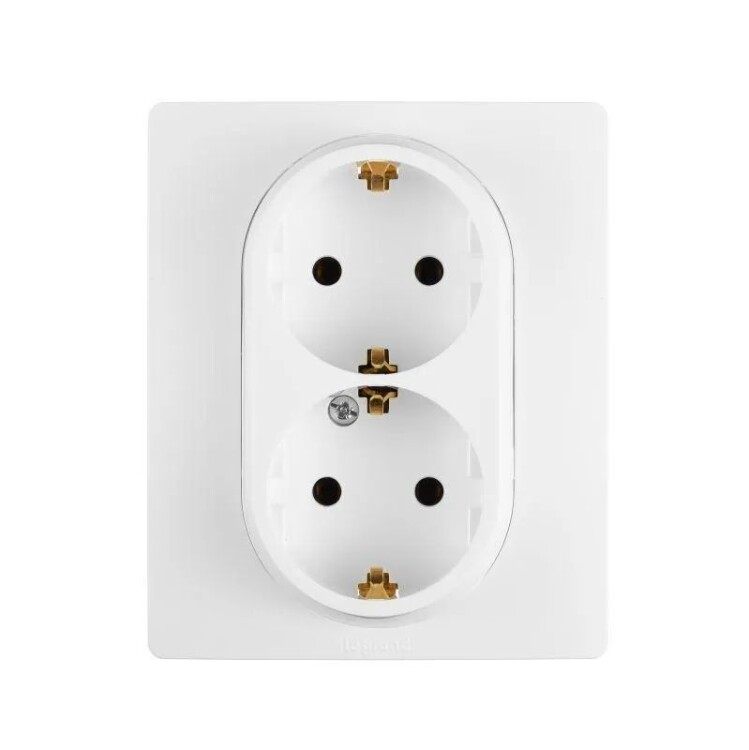 Двойная розетка с заземлением ETIKA для скрытого монтажа. Максимальный ток 16 А, максимальная мощность 3680 Вт. Применяется в зданиях, оборудованных для повышения безопасности проводкой с заземлением (с защитным проводником). Позволяет компактно разместить две розетки, используя одно место установки.