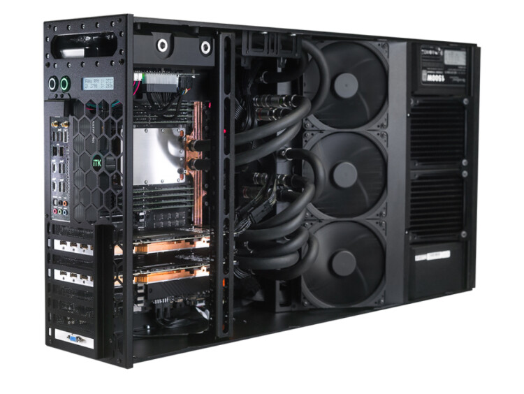 Промышленный сервер с системой жидкостного охлаждения ITK представляет собой комбинацию жидкостного охлаждения самых горячих элементов CPU, GPU, VRM опционально SSD, RAM и воздушного охлаждения для не сильно нагруженных элементов. Перенос тепла от элементов в жидкость происходит через медные пластины с применением технологии деформирующего резания "Дефрез". Высокая эффективность достигается путем отсутствия фазового перехода и низкой дельты температуры между компонентами и системой охлаждения (работа в идеальных условиях, недоступных при классическом воздушном охлаждении). Данная система жидкостного охлаждения позволяет снизить потребление вычислительного оборудования на 5-10% и добиться среднегодового PUE менее 1,05, что позволяет создавать по-настоящему энергоэффективные решения.