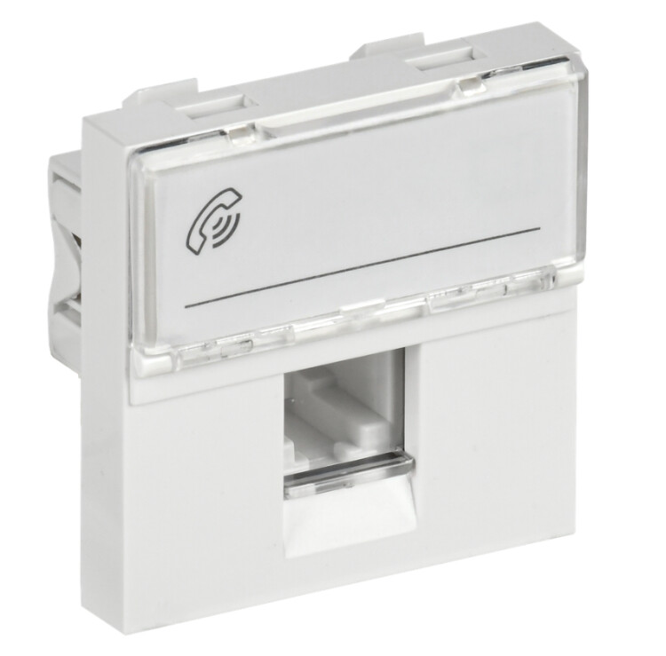 Модульные электроустановочные изделия 45х45 серии ПРАЙМЕР предназначены для организации рабочего места с применением кабель-каналов, напольных лючков или розеточных блоков, а также для открытого монтажа в коробки типа КМКУ. Розетка телефонная RJ-11 предназначена для подключения устройств абонентской телефонной техники, устанавливаемых в жилых, общественных и промышленных помещениях, к линиям телефонной сети. Розетка на 1 вход. Комплектуются одним модулем Keystone Jack категории 3 IDC. Размеры, ВхШхГ,мм: 45х45х41,7. Цвет - белый. Размеры модульных ЭУИ ПРАЙМЕР: 1 модуль = 45х22,5 мм 2 модуля (1 пост) = 45х45 мм