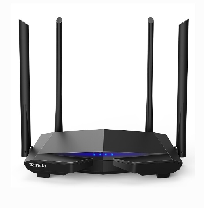 Маршрутизатор Tenda AC6 позволит вам подключиться к сети провайдера, чтобы «раздавать» Интернет на подключенные устройства. Его отличает поддержка 5 стандарта Wi-Fi, модуль его работает в частотах 2.4 ГГц и 5 ГГц, при этом устройство поддерживает работу в обоих диапазонах одновременно. С показателем частоты в 5 ГГц максимальная скорость соединения составит 867 Мбит/с, так что можете без проблем играть или запускать ресурсоемкие приложения на все устройства без «подтормаживаний». За стабильное и оперативное соединение отвечает процессор с частотой в 900 МГц, а также 4 антенны, благодаря которым увеличивается зона покрытия Wi-Fi. 20 dBM – такова мощность передатчика. Благодаря поддержке DHCP происходит автоматическое присвоение IP-адресов сетевым устройствам. За безопасность передаваемых данных в Tenda AC6 отвечает демилитаризованная зона, которая минимизирует ущерб в случае атаки на общедоступные сервисы.