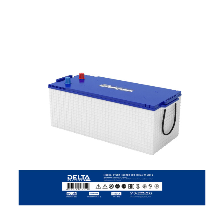Аккумуляторы DELTA START MASTER EFB изготавливаются по технологии Enhanced Flooded Battery (усовершенствованная батарея с жидким электролитом) и предлагает удвоенную устойчивость к циклическим нагрузкам по сравнению со стандартными стартерными АКБ. Аккумулятор адаптирован для применения в грузовой технике и соответствует повышенным требованиям к надежности и энергоэффективности.