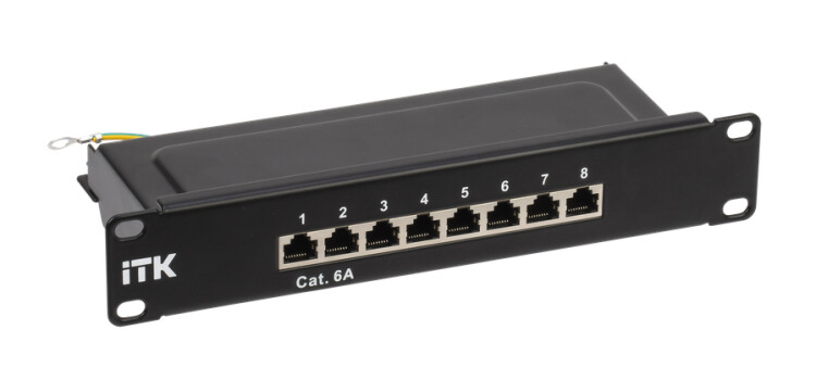 Коммутационные панели или патч-панели являются важнейшей частью любой СКС и IT-инфраструктуры здания и сооружения с большим количеством информационных розеток и терминальных портов конечных пользователей, которые необходимо коммутировать на порты активного сетевого оборудования, размещенного в серверных и распределительных узлах. В зависимости от способа крепления, масштабности кабельной системы, типа сети ITK изготавливает патч-панели для монтажа в 10-дюймовый конструктив, по количеству портов: 8-, 12-, категорий: 5E, 6, 6A, в экранированном исполнении и без защитного экрана. Патч-панели для монтажа в шкаф 10" (254мм) имеют отверстия с левой и правой стороны для крепления на профиль, производятся высотой 0,5 или 1 юнит. На передней стороне все патч-панели ITK имеют специальную площадку для дополнительной маркировки и цифровую нумерацию портов. На обратной стороне модули IDC имеют цветовую и цифровую нумерацию. Также для облегчения монтажа и укладки кабелей выпускаются модификации с кабельным органайзером.