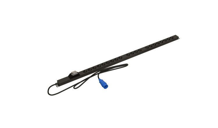 Hyperline SHE-21SH-2B-3PVB Блок розеток, вертикальный, 21 розетка Schuko, 2 автоматических выключателя, кабель питания 3м (3х4.0мм2) c вилкой IEC 60309 32A (2P+E), 250В, корпус алюминий, черный